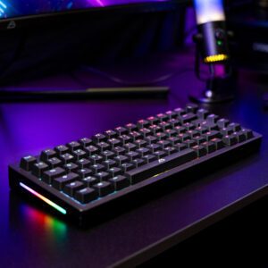 Phantom RGB-näppäimistö on jykevällä CNC-koneistetulla alumiinirungolla varustettu 75 % Compact TKL -näppäimistö, josta löytyy pitkäkestoinen 4000 mAh (14,8 Wh) akku, jolla pelaat tuntitolkulla ilman pelkoa akun hyytymisestä – jopa 270 tuntia ilman valoja langattomasti, mutta myös jopa 15 tuntia langattomalla yhteydellä ja valoshow’t päällä!