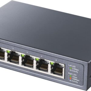 Cudy HS105 on 5-porttinen 2.5 Gigabitin ethernet kytkin, joka soveltuu hyvin pieneen koti- tai lähiverkkoon. HS-105 tunnistaa siihen liitettyjen verkkolaitteiden nopeuden ja duplex tilan automaattisesti joten käyttöönotto on nopeaa ja helppoa. Virran säästö ominaisuuden ansiosta laite vähentää tehoa automaattisesti, kun liikennettä on vain vähän.