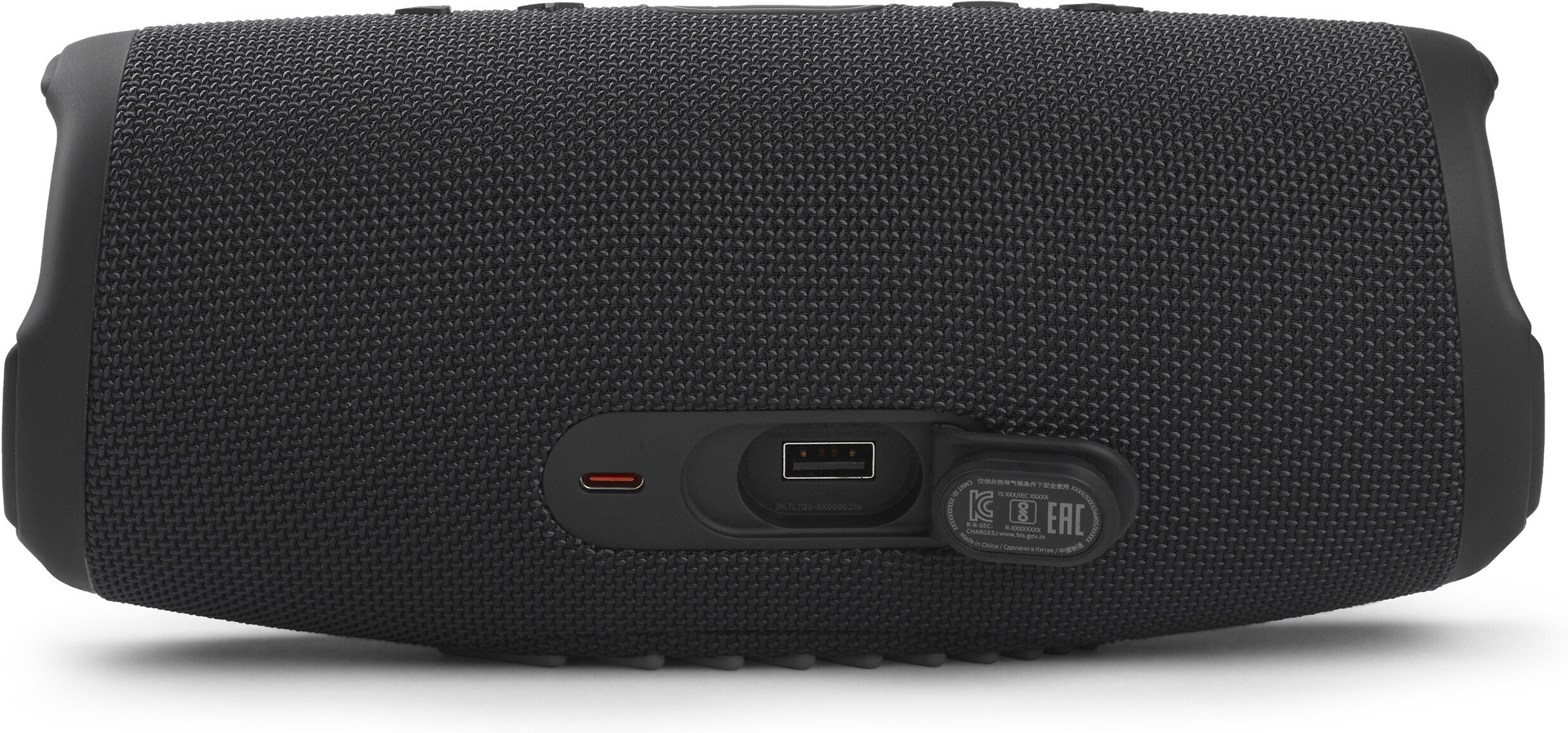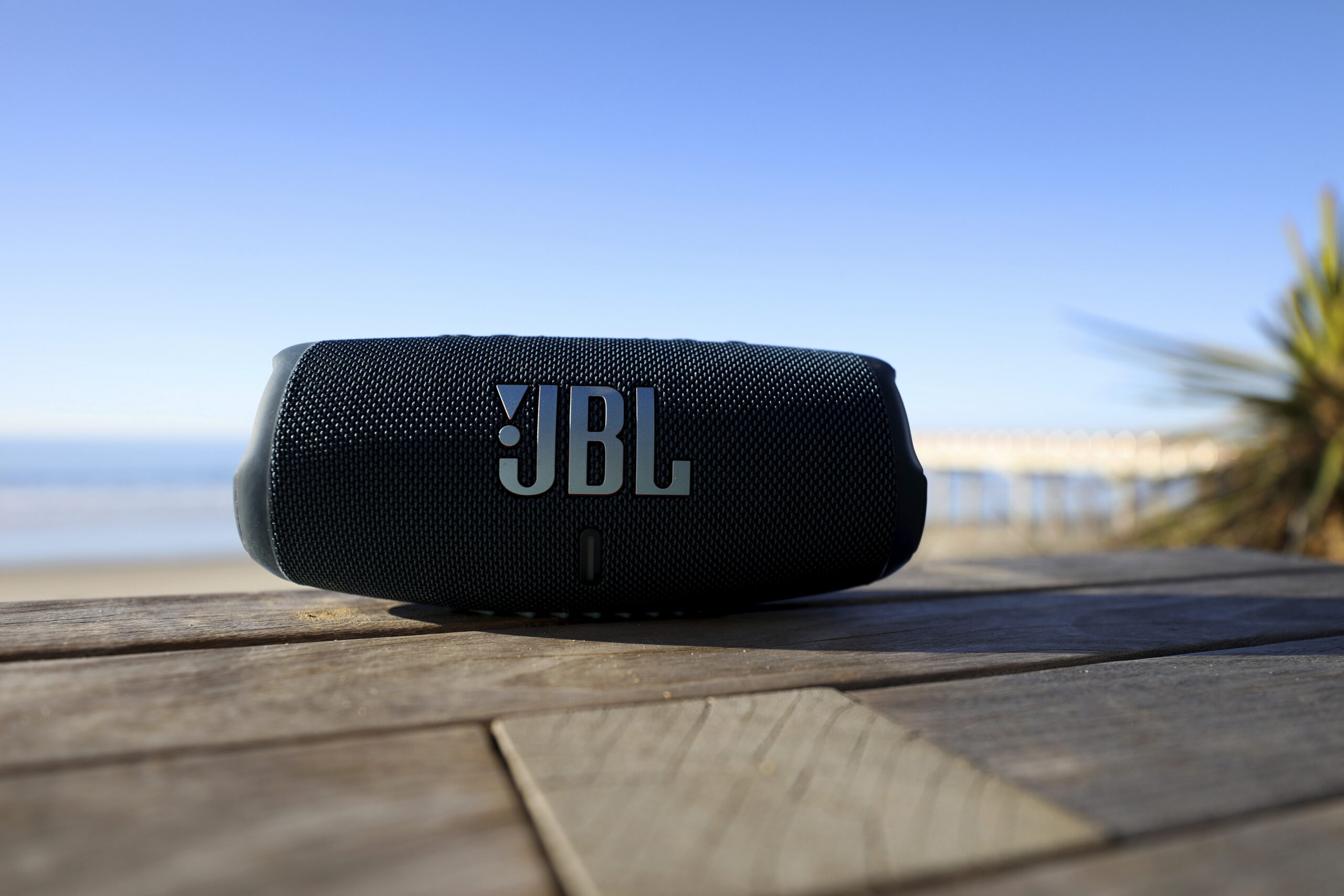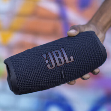 Huikean tehokkaan JBL Original Pro -äänen tuottava JBL Charge 5 on muhkeasta äänestään huolimatta yllättävän kätevän kokoinen kaiutin mukana kuljetettavaksi. Optimoidun pitkäiskuisen elementin, erillisen diskanttielementin sekä kahden bassosäteilijän ansiosta voit kokea suuren tilan voimakkaan ja selkeän äänentoiston myös ulkona.
