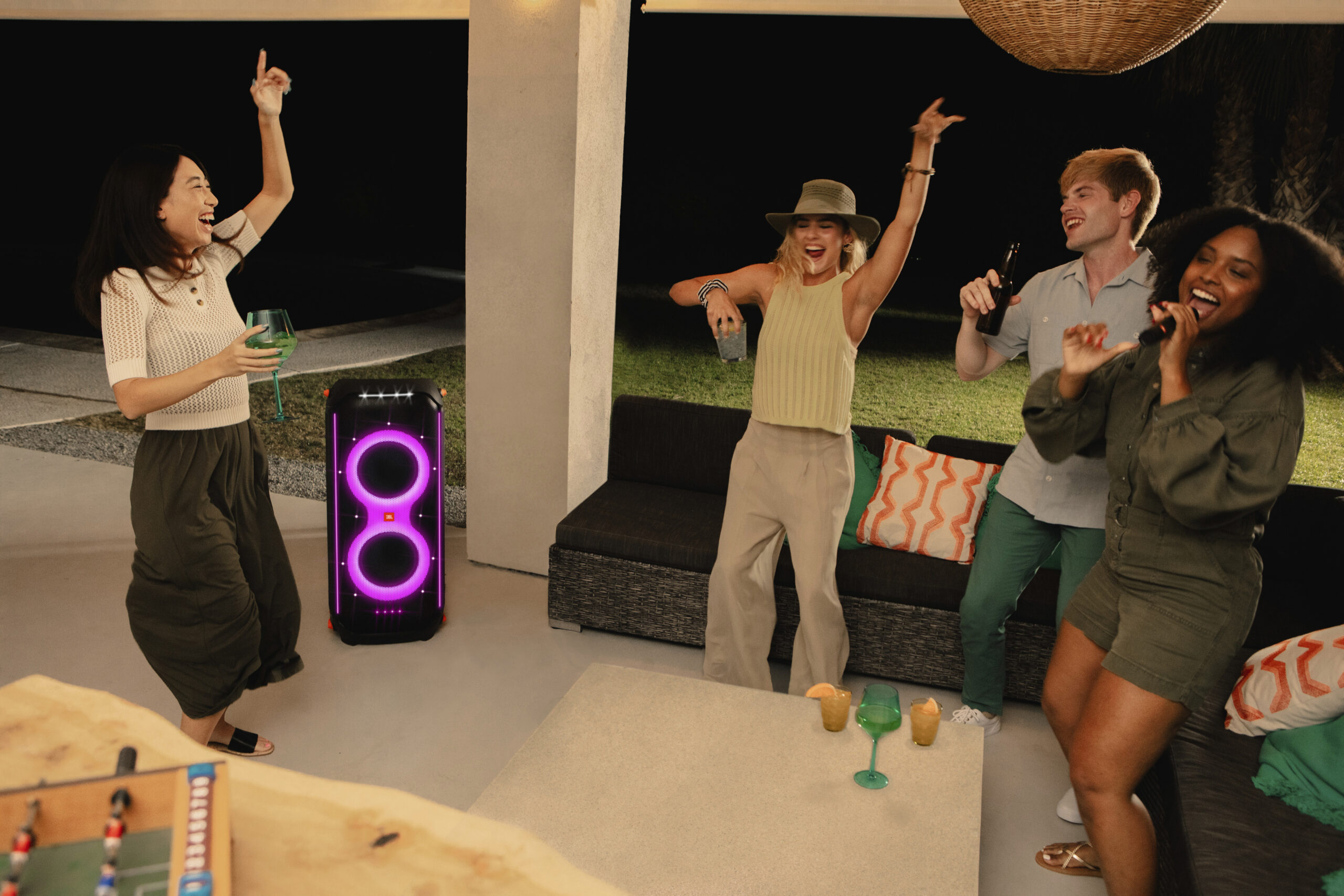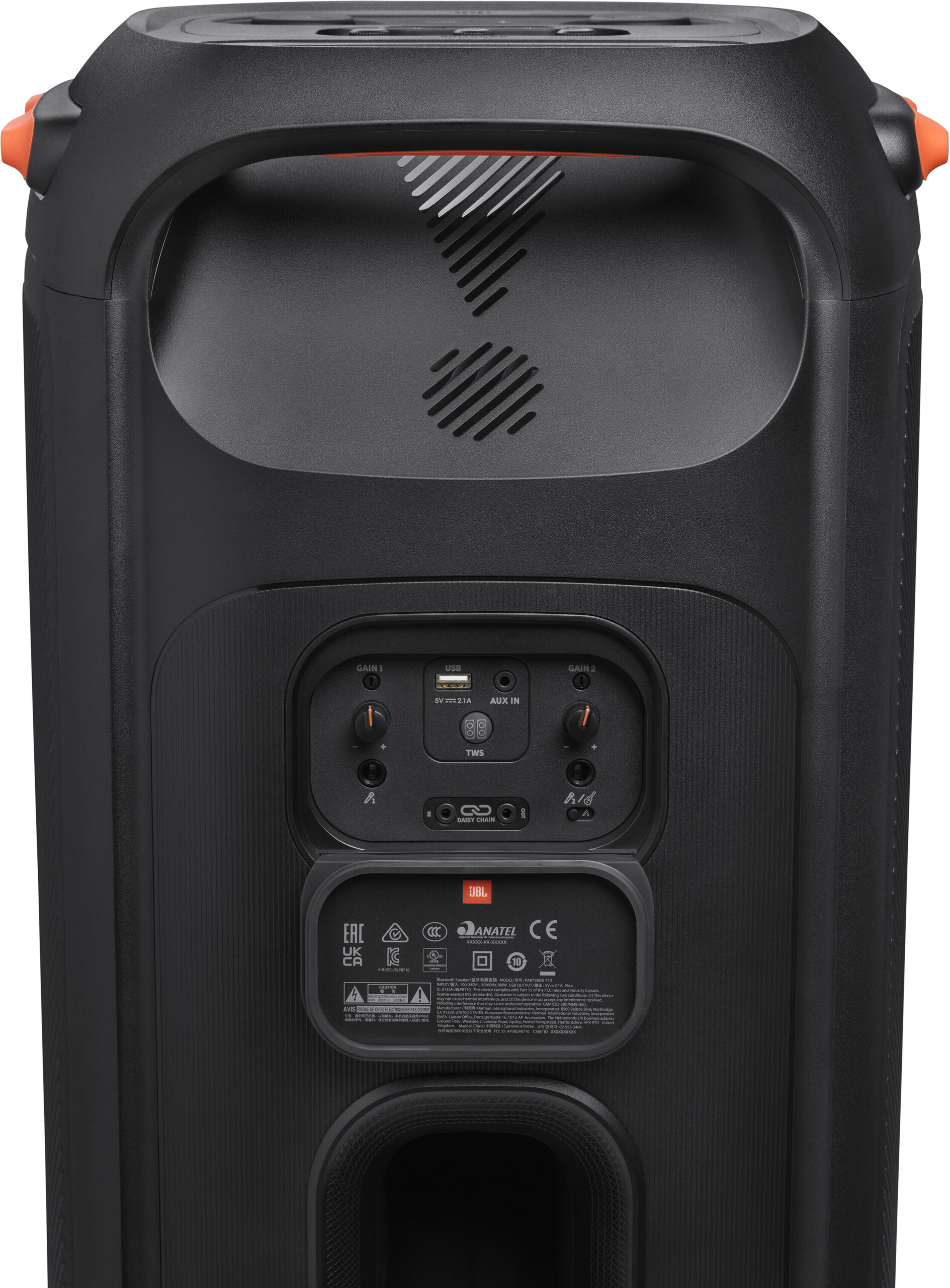 - Ohjaus yläpaneelin ohjaimilla ja JBL PartyBox-sovelluksella (iOS, Android)
