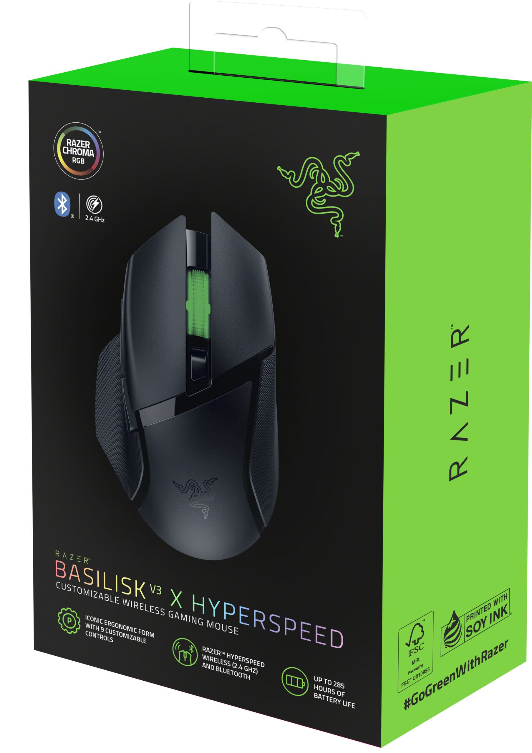 Razer Basilisk V3 X Hyperspeed hiiressä voit valita Razer Hyperspeed tai Bluetooth langattoman yhteyden. Akunkesto on HyperSpeed tilassa 285 h ja Bluetooth tilassa 535 h. Basiliskin legendaarinen muotoilu mahdollistaa monen erilaisen otteen käyttämisen ja on erittäin ergonominen. Hypershift mahdollistaa toisten komentojen nopean käytön. Voit ohjelmoida komennot Razer Synapsen avulla. Basilisk V3 Hyperspeedissä on 18 000 DPI Razer 5G advanced sensori sekä 2nd-gen Razer optiset kytkimet, joiden kestävyys on jopa 60 miljoonaa painallusta.