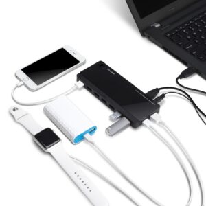 Kytke jopa 7 laitetta samanaikaisesti, hubissa on lisäksi kaksi porttia mitkä lataavat 5V/2.4A teholla. USB 3.0 portit antavat jopa 10-kertaisen nopeuden verrattuna USB 2.0. Et tarvitse erillisiä ajureita.